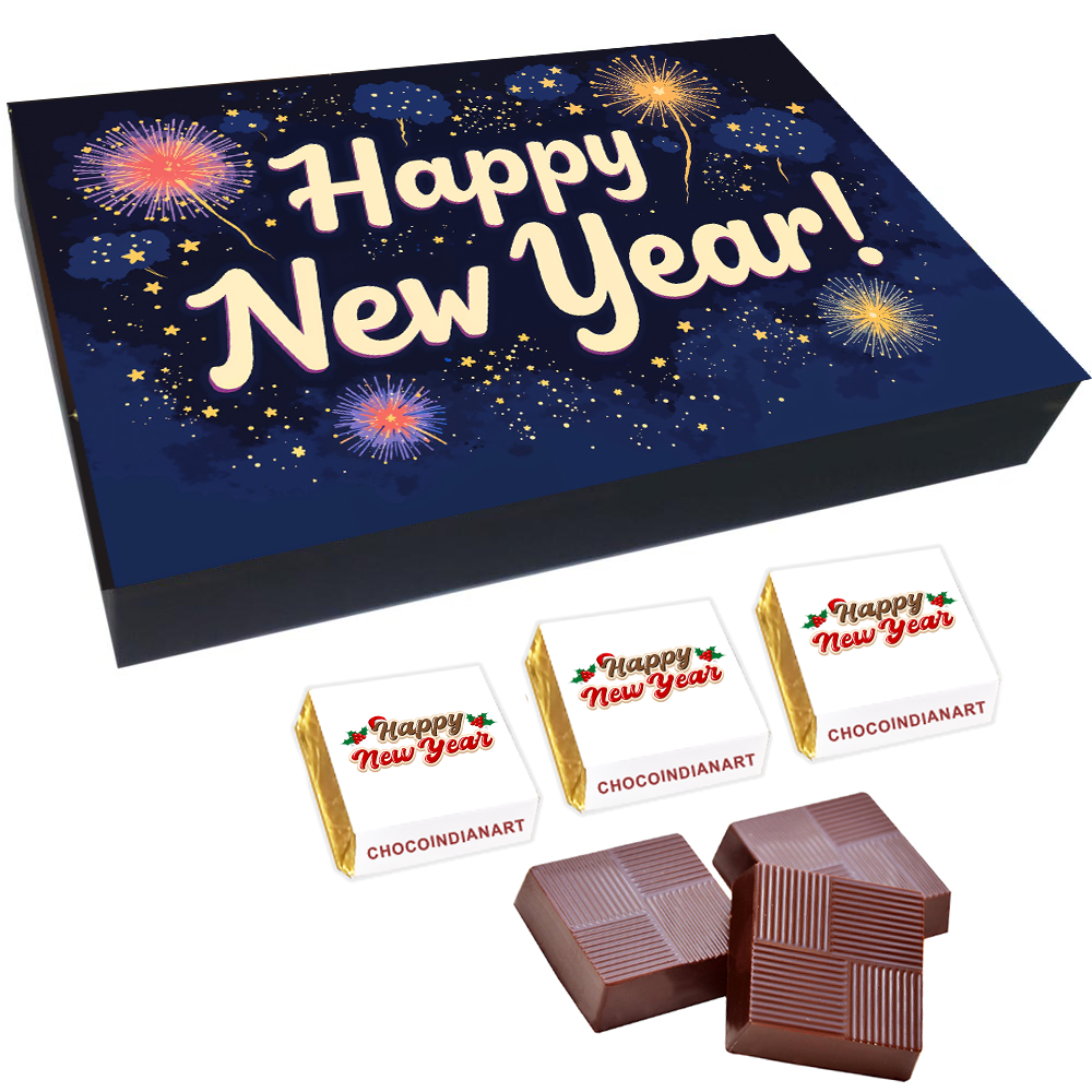 You will get a Happy New Year light wooden box with all wrapper printed chocolates. There is also a Happy New Year message printed on Message paper inside the box.